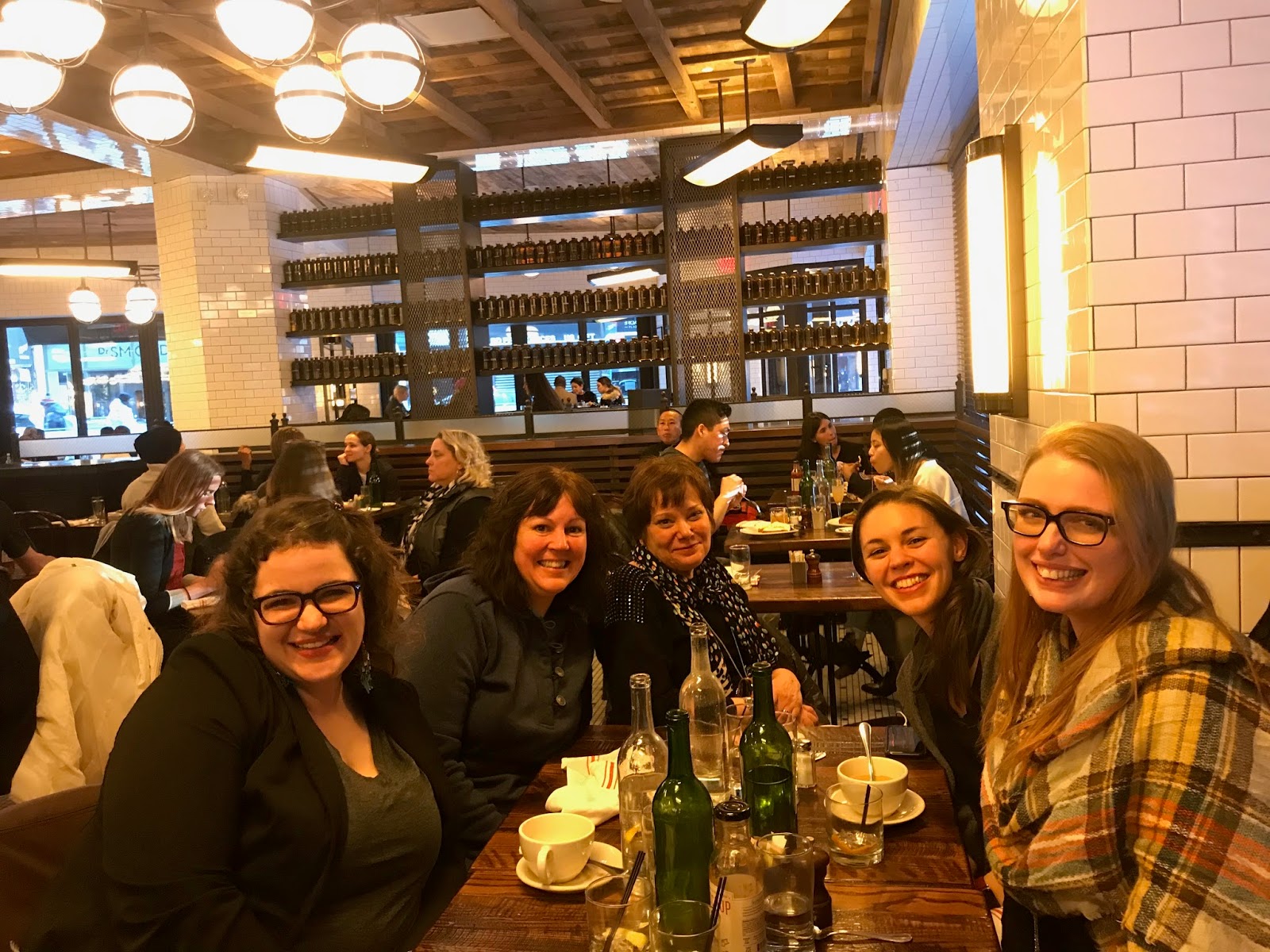 I spent last weekend in NYC wedding dress shopping with Sarah, maid of honor, Jessica, and Paul's mom, Lorraine. Sarah, said "Yes to the Dress", but not at Kleinfeld's. We didn't even go there. They are just a bit out of our budget but we did find two places that fit our budget and the last dress she tried on was the one! I wish I could show you the dress, but I just can't. Here is a picture of us all at brunch later that day. Sarah's friend, Theresa, was also able to join us. Sarah, Jessica and Theresa introduced Lorraine and I to a drink called the Barnstormer--so good!